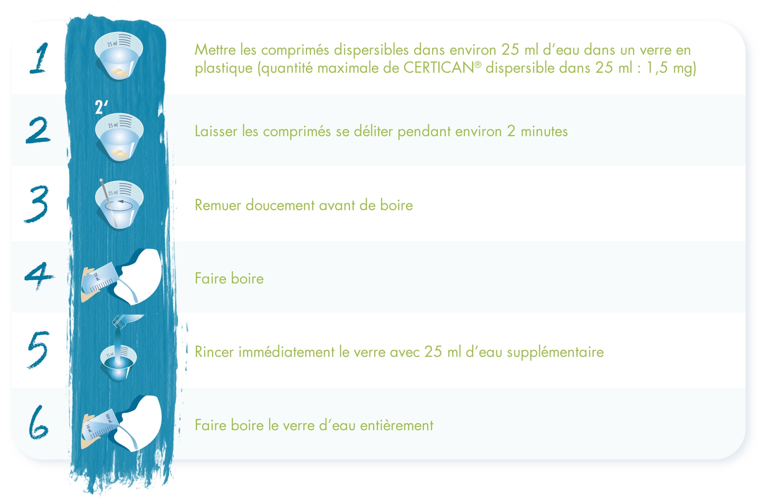Des comprimés dispersibles de CERTICAN® sont disponibles pour les patients qui ne pourraient pas avaler les comprimés entiers.
